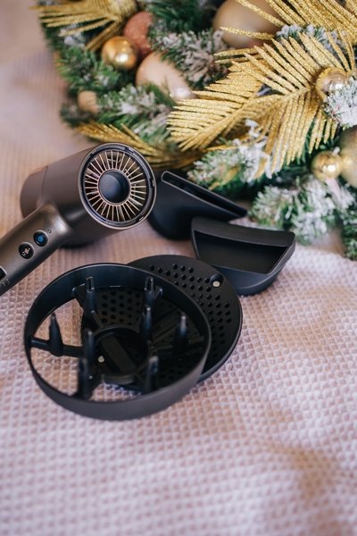 - Дифузор для дбайливого сушіння: Якщо у вас кучеряве або хвилясте волосся, дифузор Gentle Drying Diffuser допоможе прискорити природний процес сушіння. Він у 4 рази швидший, ніж повітряне сушіння, і чудово підходить для тих випадків, коли потрібно кудись поспішати. Для використання просто піднесіть велику відкриту чашу до поверхні волосся, і легкий розсіяний потік повітря м'яко висушить ваші локони або хвилі, не порушуючи їхньої природної форми і текстури.