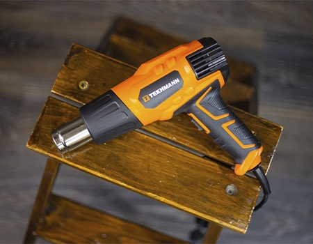 Будівельний фен Tekhmann має два температурні режими (350°C/550°C) і регульовану швидкість потоку повітря, що дозволяє виконувати різноманітні завдання. Захист від перегріву подовжує термін служби нагрівального елемента.