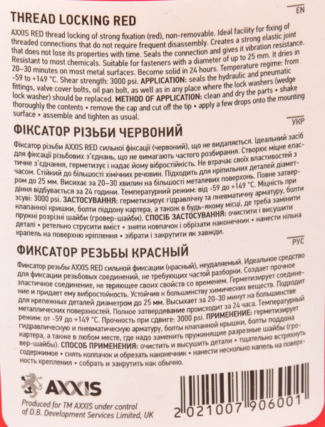 Фіксатор різьби Axxis Червоний 50г (VSB-027) (48021007906)