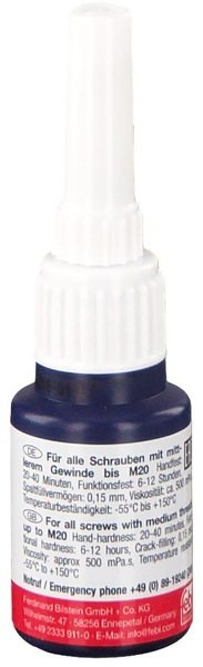 Фіксатор різьбових з'єднань febi середньої або високої міцності являє собою анаеробний рідкий полімер, який твердне при контакті з металами за відсутності кисню. Короткий час затвердіння і висока надійність робить цей продукт ідеальним рішенням для фіксації та герметизації гвинтів, гайок і різьбових шпильок.