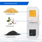 - Фільтр активно очищує воду від забруднень та неприємних запахів, що дозволяє вашій кішці насолоджуватися лише чистою водою.