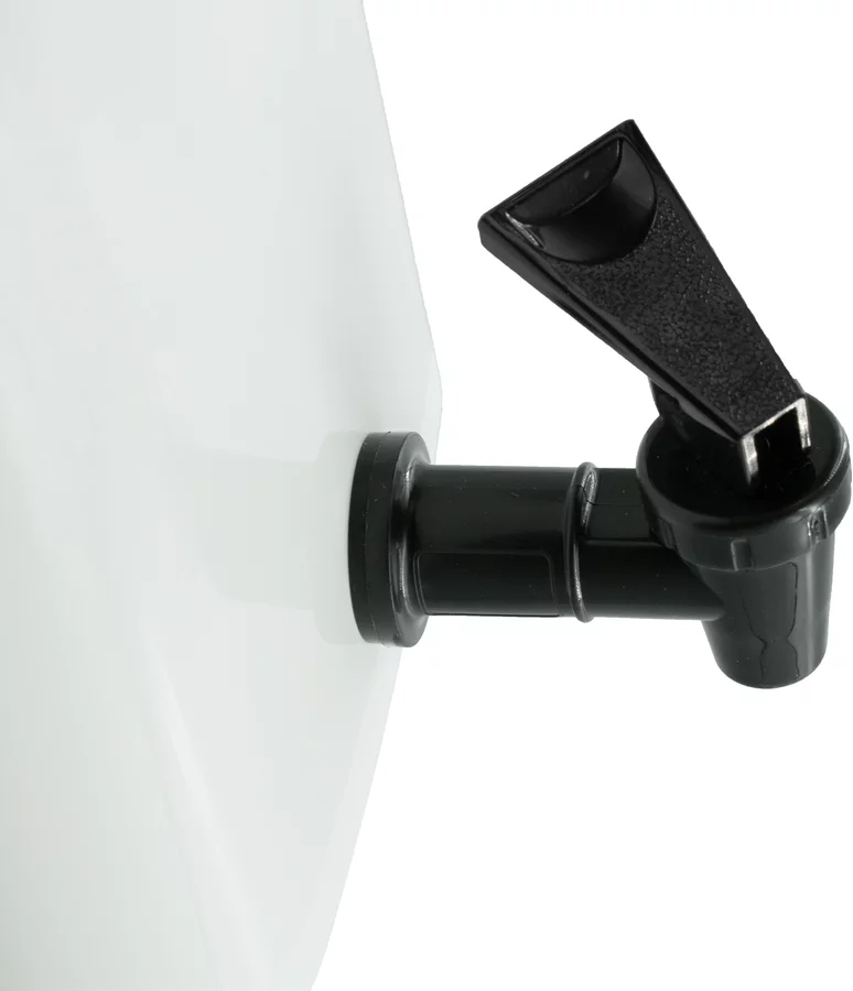 - Випускний кран не лише зручний у користуванні, а й запобігає контакту води з брудними руками.