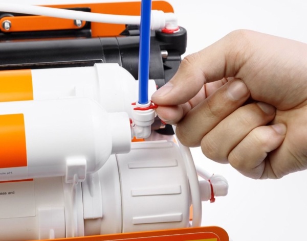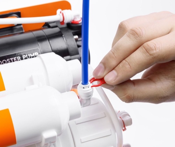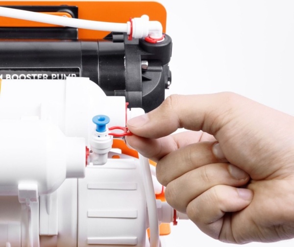 Оскільки мембрана має мікропористу структуру, необхідно забезпечити певний тиск для ефективного проходження води через її поверхню. Якщо напір у трубопроводі холодної води нижче заданого значення, то тиск підвищують шляхом встановлення помпи. Окрім насоса, в помпі є мікроконтролер та 2 датчики тиску (на вході та виході з мембрани). Насос починає працювати лише, коли тиск не відповідає необхідному діапазону.