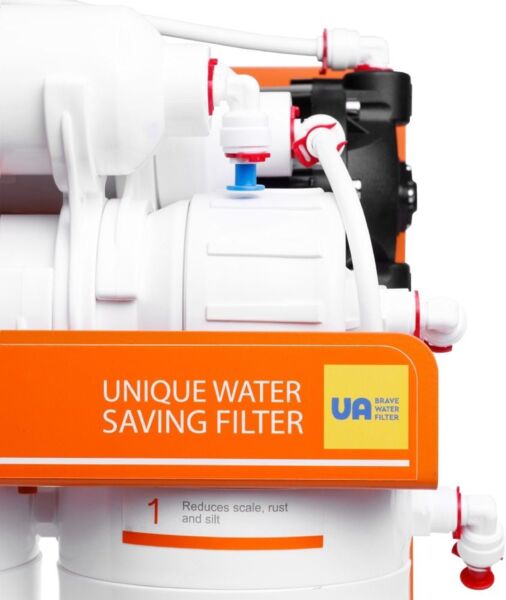 Фільтр з функцією економії води та мінералізацією, призначений для водопровідних мереж зі слабким напором води. На відміну від звичайних фільтрів зворотного осмосу, в яких на 1 літр чистої води 7-8 літрів скидається в каналізацію, Ecosoft Absolute на 1 літр чистої води скидає всього 1 літр. Це дозволяє економити до 20000 літрів води на рік.