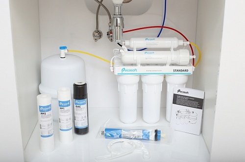 - Фільтр зворотного осмосу Ecosoft Standard 5-50 (1 уголь.картрідж, простий кран, 50 галл / добу)