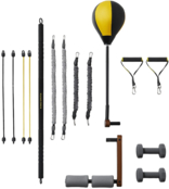 | Комплектація (можливі зміни в різних поставках) | Балансувальний важіль, Боксерська груша – 1 шт., Гантелі – 2 шт., Документація, Багатофункціональна ручка – 2 шт., Лава, Тренувальна планка, Трос опору (10 кг) – 2 шт., Трос опору (20 кг) – 2 шт., Еластичний трос (16 кг) – 2 шт., Еластичний трос (8 кг) – 2 шт. |