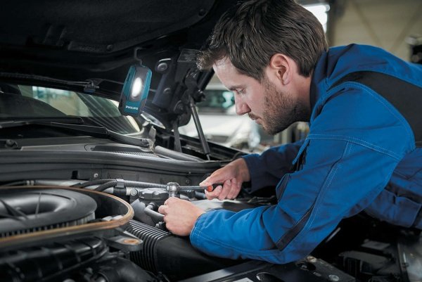 Поворотна основа ліхтаря оснащена надійним магнітом, щоб ви могли працювати обома руками. Це особливо зручно за наявності металевих поверхонь неподалік, наприклад, якщо ви займаєтеся ремонтом двигуна. Просто прикріпіть магніт до металевої поверхні, а потім за допомогою поворотної основи встановіть потрібний кут освітлення.