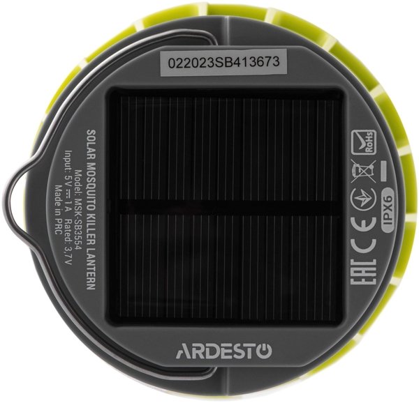 Аби ніщо не зіпсувало відпочинок у кемпінгу або вечірні посиденьки на подвір’ї чи на балконі, варто попіклуватися про захист від комарів та інших комах. У цьому допоможе протимоскітний ліхтар ARDESTO, оснащений акумулятором 1 200 мА·год і сонячною батареєю. Пристрій цілком безпечний і придатний до використання як просто неба, так і в приміщенні.