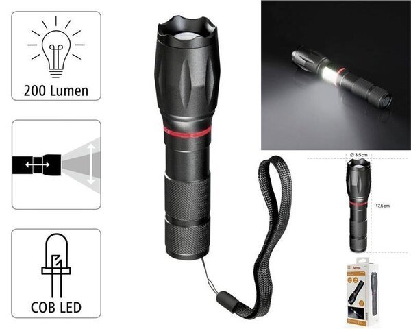 Ліхтар Hama SOLID PRO L200 Black 00185808. Високоякісний і міцний ліхтарик в алюмінієвому корпусі ідеально підходить для активного відпочинку, майстерень, автомобілів і відпочинку. Світлодіодна технологія для рівномірного освітлення площі. Якщо ліхтар розтягнути, з’явиться світлодіод COB, який можна активувати натисканням кнопки.
