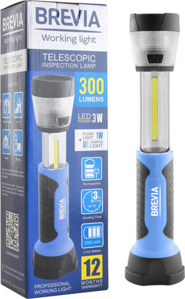 Ліхтар інспекційний Brevia телескопічний LED 3W COB+1W LED+8LED 300lm 2000mAh адаптер AC 220 (11330)