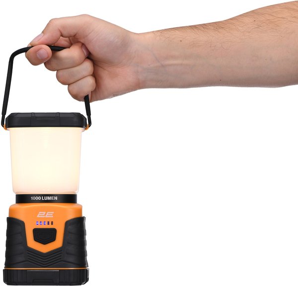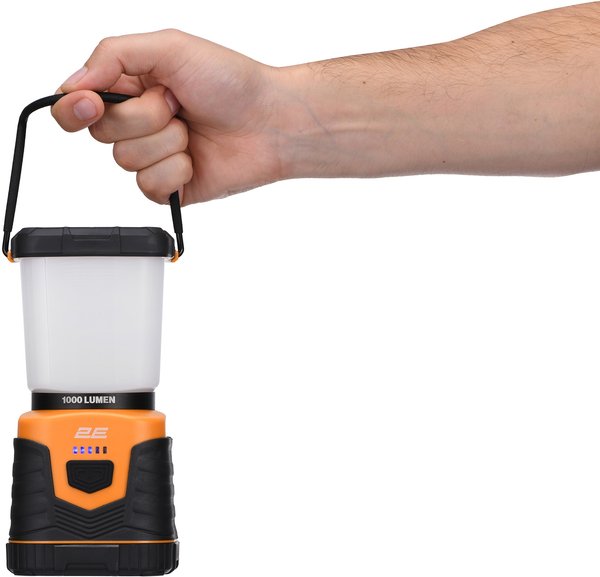 Кемпінговий ліхтар 2E-PLBL1844 вирізняється сучасним дизайном і компактністю. Його світловий потік становить 1 000 люмен, потужність – 10 Вт, а дальність світла сягає 15 м. Корпус чорного кольору виготовлено з пластику ABS і термопластичної резини.