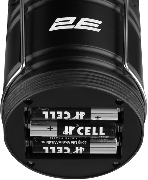 Кемпінговий ліхтар 2E-PLBL3AAF зі світловим потоком 200 люмен та потужністю 3 Вт забезпечує дальність світла до 10 м. Світлодіодне джерело – три лампи COB LED. Корпус чорного кольору виготовлено з пластику. Ліхтар має висувну складану конструкцію, працює від трьох батарейок АА, час роботи становить від 2 до 5 годин.