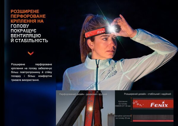 - Ліхтар налобний для бігу Fenix HM65R-DT, чорний