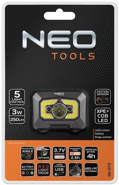- Ліхтар налобний NEO 250 люмен, 3Вт, USB (99-073)