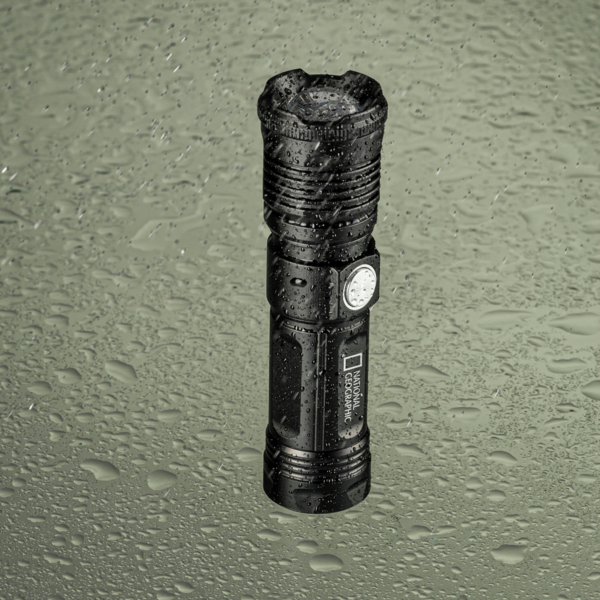 Потужний промінь у 1000 люмен, сучасний світлодіод Cree SST40, надлегка вага лише 107 грамів, герметично захищений корпус за стандартом IPX44, компактний та багатофункціональний ліхтар National Geographic Iluminos Led Zoom Flashlight 1000 lm (9082400) відмінний вибір для туристів, мисливців, рибалок, кемперів, та й просто для повсякденного використання. Система фокусування променя дозволяє вручну регулювати відстань на якій ліхтар буде освітлювати об'єкти, і кут променя від далекого сфокусованого пучка світла до широкого, однорідного освітлення, ширина світлового променя регулюється ковзанням головної частини корпусу ліхтаря уперед чи назад. Завдяки цьому модель здатна ефективно освітлювати місцевість на різній відстані. Надійний алюмінієвий корпус з анодованим покриттям забезпечує захист від механічних пошкоджень. Гумові ущільнювачі забезпечують герметичність корпусу за стандартом IPX44 (захист від водяних бризок з будь-якого напрямку). Завдяки вбудованому магнітоутримувачу в торцевій частині корпусу, ліхтар легко можна закріпити на будь-якій металевій поверхні, наприклад, крило або капот автомобіля. Ліхтар має 3 режими роботи для подачі добре помітних на великій відстані сигналів. При першому натисканні вмикається максимальна потужність, при повторному яскравість 50%, третій натиск режим стробоскопа. Ліхтар укомплектований акумулятором 16340 (Li-ion 3,7V 700 mAh), магнітним USB-кабелем для заряджання.