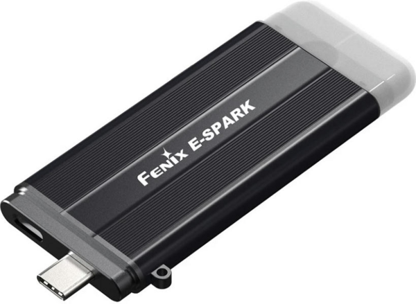 Fenix E-Spark є акумуляторним ліхтарем-брелоком для аварійних ситуацій. Fenix E-SPARK - акумуляторна модель на брелоку з функцією Power Bank. Його найбільша яскравість світла досягає 100 люмен, а відстань дії променя - 30 метрів. Функція визначення рівня заряду, п'ять режимів яскравості, можна також заблокувати модель. Fenix E-Spark є акумуляторним ліхтарем-брелоком для аварійних ситуацій. Fenix E-SPARK - акумуляторний ліхтар на брелоку з функцією Power Bank. За рахунок вбудованого акумулятора ємністю 800 мАг він гарантує яскравість світла 100 люмен, далекобійність променя становить 30 метрів. Коли ліхтар розблоковано, утримуйте кнопку приблизно 0,5 сек, щоб увімкнути/вимкнути. Вибір режиму освітлення: коли ліхтарик увімкнений, натискання один раз на кнопку змінює яскравість у такому порядку: Low→Med→High→червона→червоний спалах. Коли ліхтар розблокований і вимкнений, двічі клацніть перемикач протягом 0,5 секунд, щоб заблокувати. Ліхтар двічі блимає на мінімальній яскравості, вказуючи на перехід у режим блокування. Ліхтар запам'ятовує останній активований режим і ввімкнеться на ньому під час наступного ввімкнення.