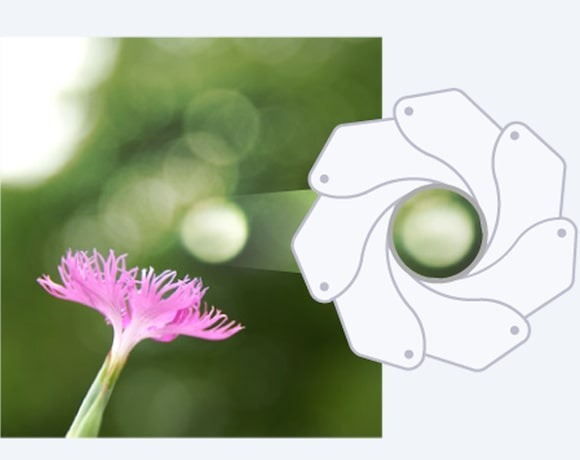На відміну від стандартних об'єктивів із багатокутною діафрагмою, цей об'єктив має круглу 7-пелюсткову діафрагму, яка забезпечує природніші заокруглені ефекти дефокусування або "боке".