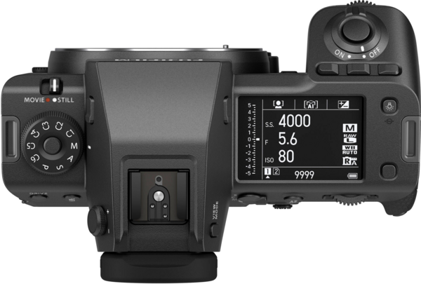Більш помітний РК-дисплей на верхній панелі GFX100 II з оновленим графічним інтерфейсом для кращої видимості покращує загальну керованість. Крім того, верхня панель нахилена на 11°, що дозволяє користувачам переглядати інформацію з мінімальним рухом очей.