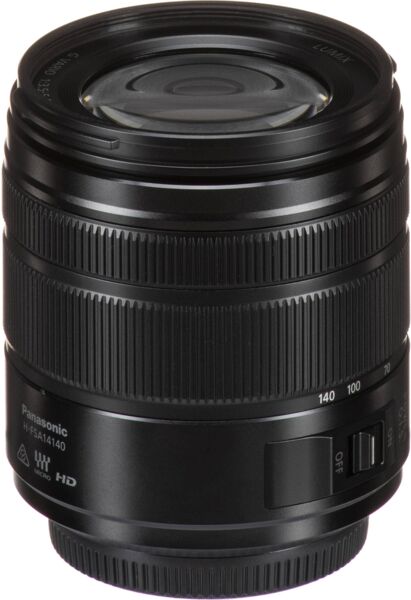 Варіооб’єктив стандарту MFT з фокусною відстанню 14–140 мм/28–280 мм (еквівалент фотокамери з 35-міліметровою плівкою).
