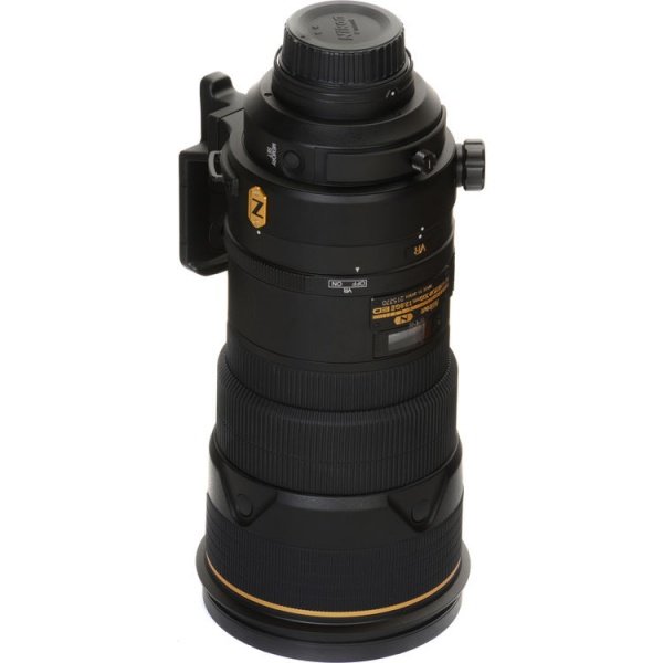 Професійний телеоб'єктив із швидкою діафрагмою. Містить систему придушення вібрацій Nikon другого покоління та покриття Nano Crystal, що забезпечує найвищу чіткість зображень навіть при зйомці за умов недостатнього Освітлення. Висока різкість по всій площі зображення, висока швидкість роботи, тиха система автофокусування і вологозахищений магнієвий корпус, здатний протистояти несприятливим умовам навколишнього середовища.