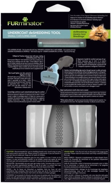 Інструмент FURminator S для котів до 4,5 кг з довгою шерстю зменшує линьку на 90%. Призначений для шерсті довжиною до 5 см. Використовуйте на сухій шерсті 1-2 рази на тиждень протягом 10-20 хвилин.