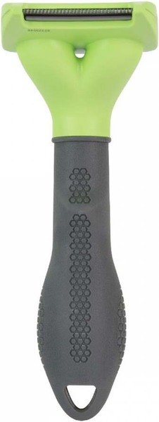 - Лезо інструменту проникає крізь остьове волосся, не пошкоджуючи його, і легко витягує мертві, слабко прикріплені волоски підшерстя.