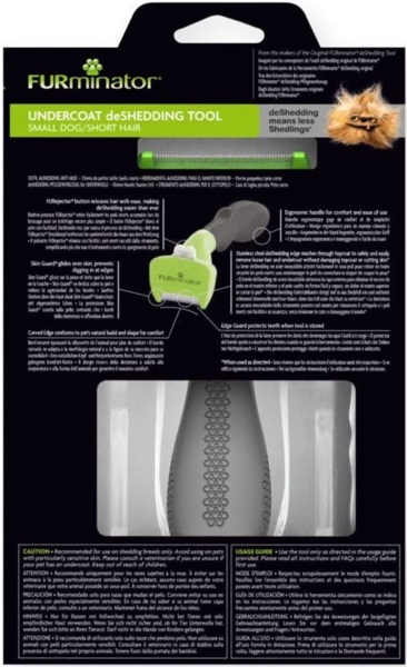 Інструмент FURminator S для дрібних собак з довгою шерстю зменшує линьку до 90%. Використовуйте на сухій шерсті 1-2 рази на тиждень протягом 10-20 хвилин.