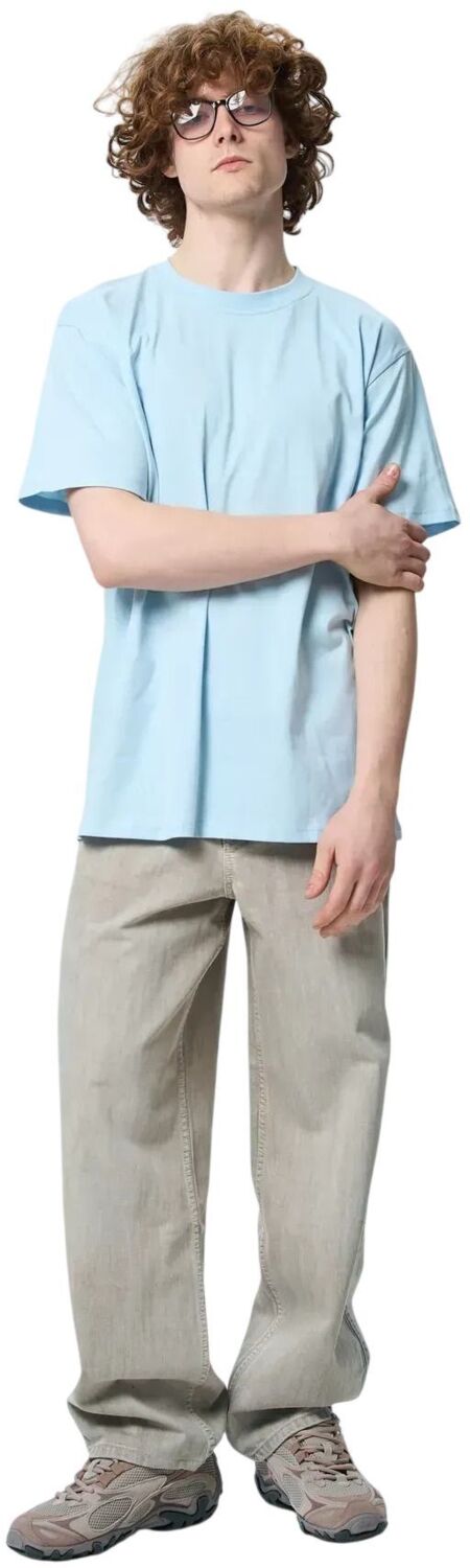Футболка вільного прямого крою з круглим вирізом горловини та стандартною довжиною є універсальною моделлю, що пасує до будь-якої фігури та стилю. Виготовлена з тонкої бавовняної тканини, яка ледве відчувається на тілі. Є ідеальним вибором для базового літнього гардеробу.