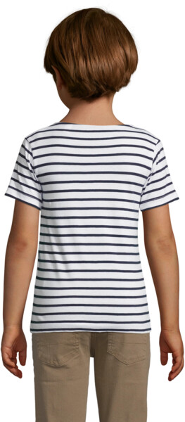Sol's Miles Kids — це дитяча класична футболка з круглим вирізом і смугастим дизайном. Ця модель — базова футболка в смужку для дітей, яка підходить для повсякденного носіння, школи та відпочинку.