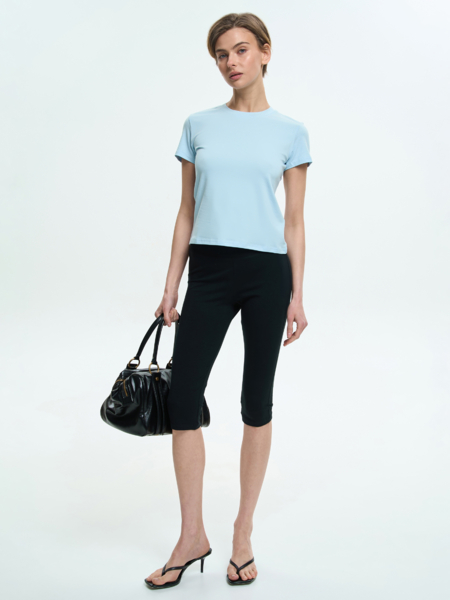 Укорочена жіноча футболка з круглим вирізом — стильний і практичний вибір для сучасного гардеробу. Виготовлена з еластичного куліру, вона забезпечує комфорт, м'якість і зручність при носінні. Завдяки універсальному дизайну, футболка ідеально підходить як для використання в багатошарових образах, так і як самостійний елемент для створення стильного образу.