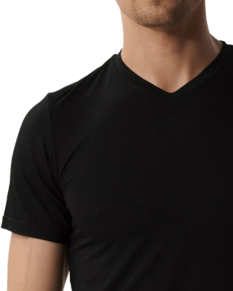 Чоловіча чорна футболка Atlantic з короткими рукавами й V-подібним вирізом. Створена для забезпечення максимального комфорту і свободи рухів, вона виготовлена з тканини, що поєднує шовковистий бамбук і еластан.