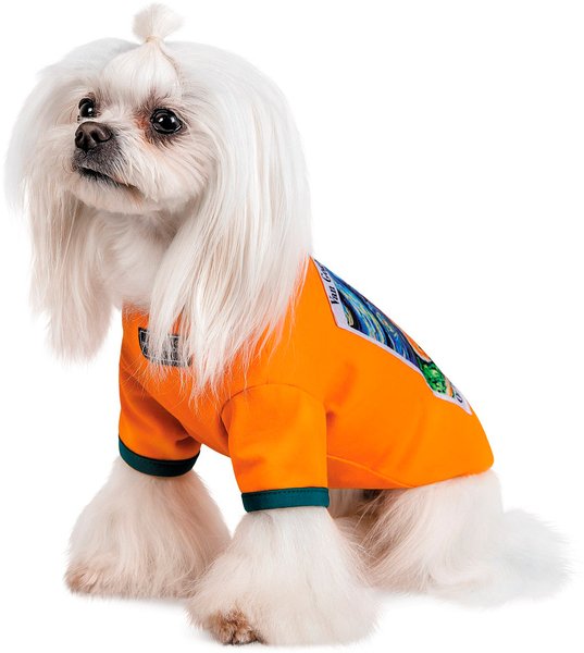 Яскравий помаранчевий колір тканини й аплікація за мотивами відомої картини Ван Гога створюють піднесений романтичний настрій. Це саме те, що потрібно для неквапної вечірньої прогулянки або розваг під яскравим сонечком. Бавовняний трикотаж захищає і від гарячих сонячних променів, і від прохолоди, та чудово підкреслює індивідуальність вашого хвостика.