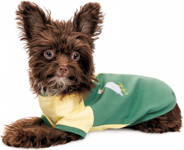 Кольори зеленої трави і теплого сонця поєдналися в легкій і зручній футболці Endy. Неповторної чарівності моделі додає оригінальна термоаплікація. Тканина футболки м'яка та дихаюча. Бавовняний трикотаж захистить хвостика і від спеки, і від прохолоди. Завдяки еластичності тканини і продуманому крою футболка легко одягається без застібки.