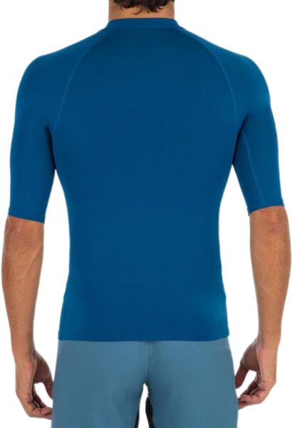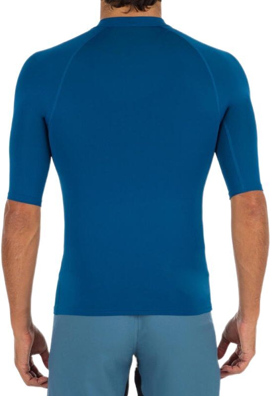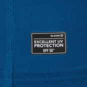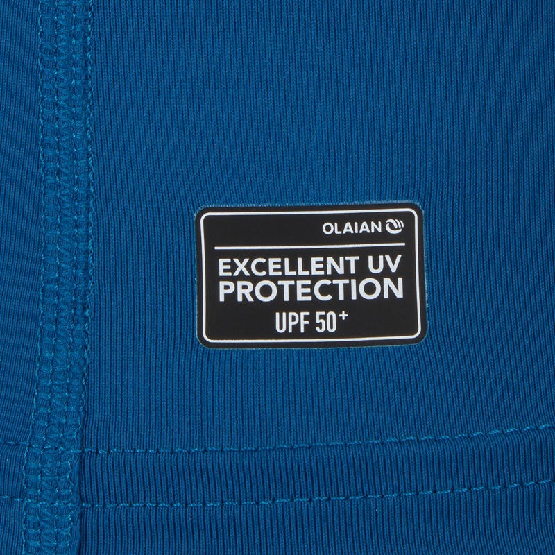 Тканина цієї сонцезахисної футболки від Olaian фільтрує не менше 98% UVB-променів і 95% UVA-променів (UPF 50+). Це гарантує надійний захист від сонячного випромінювання. Виріб можна використовувати як у воді, так і на суші. Призначений для водних видів спорту. УФ-випромінювання фільтрується завдяки щільності текстильних волокон. Захисні властивості не змінюються з часом, навіть після прання. Увага: еластан, що міститься у волокнах, може розпадатися у хлорованій воді. Ця стійка до ультрафіолетового випромінювання футболка допомагає зменшити тертя та натирання внаслідок контакту з дошкою для серфінгу або бодібордингу. Футболку також можна вдягати під гідрокостюм для обмеження натирання, особливо в зоні шиї та пахв. Менше натирає під час веслування (заняття тривалістю до 1 години).