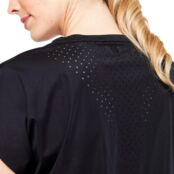 Крій футболки розроблений для комфорту під час виконання вправ. Футболка має лазерні вирізи на спині та з боків для кращої вентиляції та виготовлена з використанням техніки мапування тіла, яка є дуже популярною у спортивному одязі. М'яка тканина робить футболку приємною в носінні. Тканина також відводить піт, що забезпечує відчуття сухості під час тренування. Вона еластична, щоб було комфортно рухатися, і легка, тому дуже приємна до тіла. Ця футболка має безліч стильних деталей! Вільний крій, Т-подібні спущені рукави та закруглений поділ створюють стильний образ.