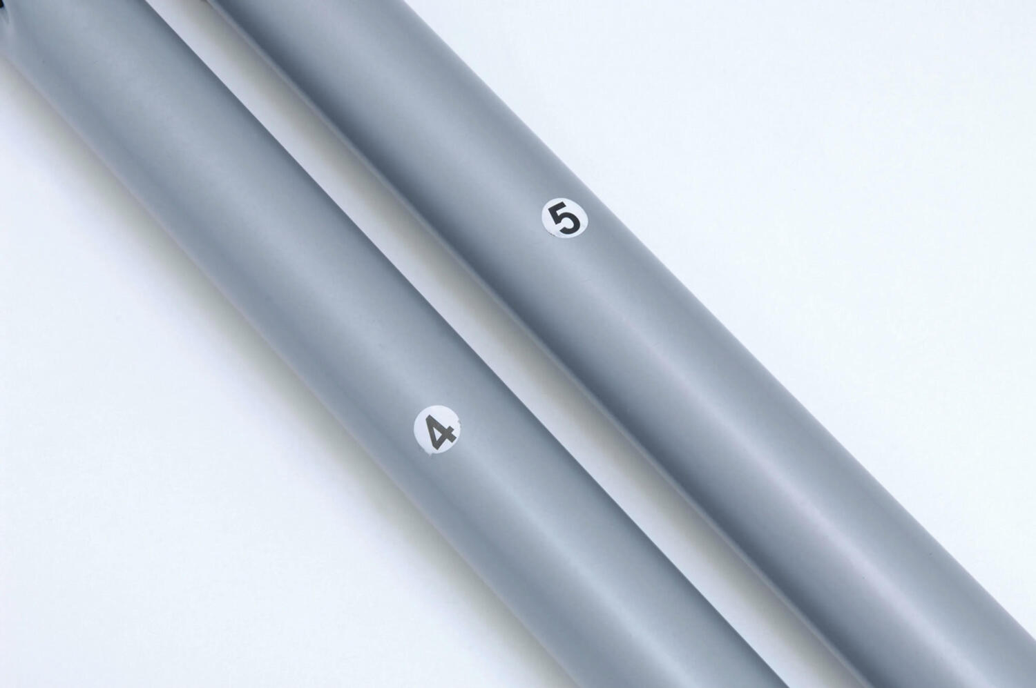 - Срібляста рама з високоміцної сталевої труби Ø32 мм з порошковим покриттям, призначена для зовнішнього використання.