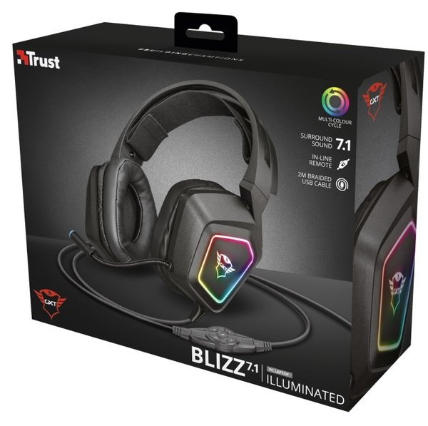 - Ігрова гарнітура Trust GXT 450 Blizz RGB 7.1 Surround Gaming Headset RGB Black