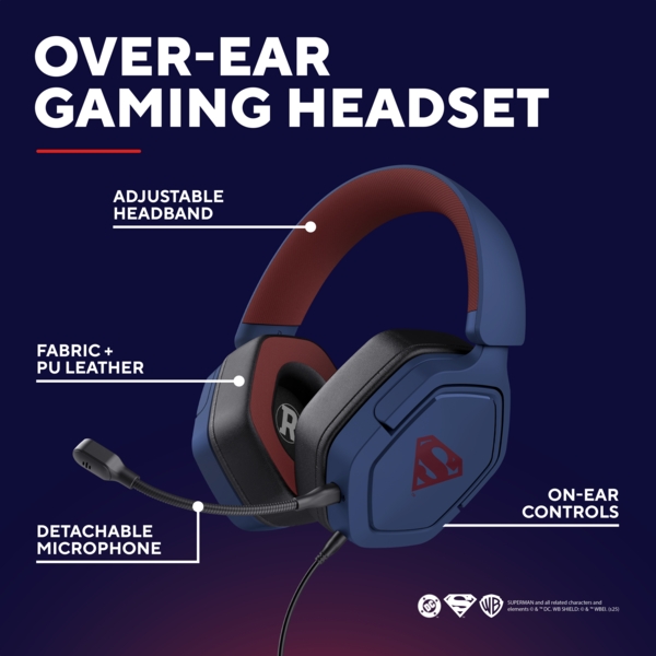 Покажіть свою любов до Людини зі сталі за допомогою офіційно ліцензованої гарнітури з культовими червоно-синіми кольорами та логотипом Супермена, який додасть епічного стилю вашій ігровій системі. Незамінний аксесуар для кожного шанувальника Супермена!