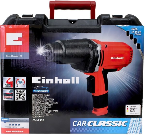 У меня всегда на подхвате этот гайковерт. Устройство легкое, что хорошо, как в транспортировке, так и в работе. Сборка его прекрасная. Шнур коротковатый, но с переноской нормально. Управляю ним с легкостью. Направления вращения меняю кулисным выключателем. На рукоятке есть прорезиненные накладки. С ними держать удобно инструмент и не дают они скольжения. Таким аппаратом помогал снимать колесо мне знакомый водитель. У него так быстро и просто это получилось, что я решил себе тоже такой прикупить. Нашел по приемлемой цене Einhell CC-IW 950/1 на этом портале и взял. Это приспособление справляется с большими нагрузками, и его начинка ни разу не подвела. Лежит всегда этот прибор в багажнике, мало ли чего в дороге. Знакомый не подкачал, спасибо ему.