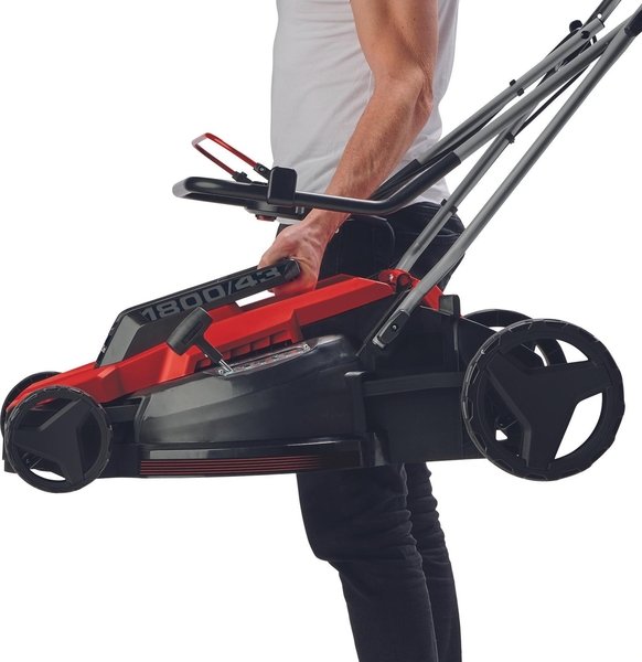Електрична газонокосарка Einhell завдяки потужному двигуну потужністю 1800 Вт забезпечує ідеальний результат підстригання у вашому саду. З шириною зрізу 43 см і швидкістю до 3300 об/хв акумуляторна газонокосарка впорається з будь-яким рельєфом. Вона стійка і має міцну штовхальну штангу зі сталі з порошковим покриттям. Газонокосарка рекомендована для ділянок площею до 800 м².