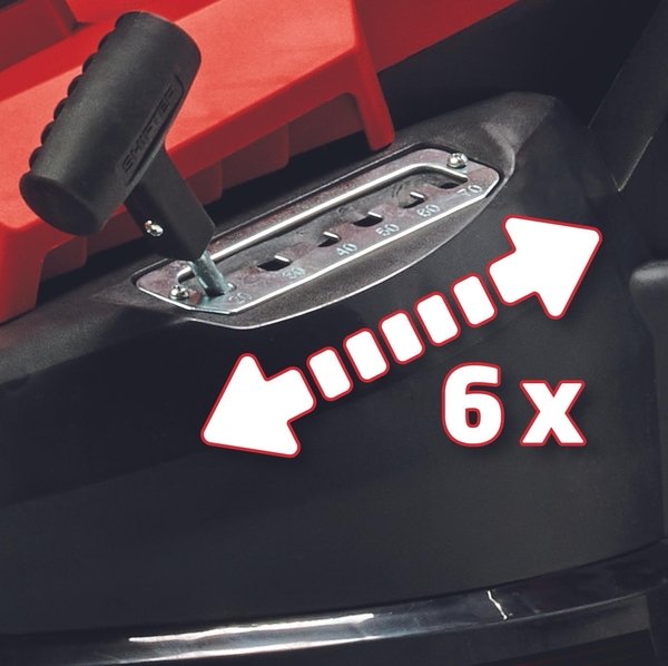 Електрична газонокосарка має 6-ступеневе центральне регулювання висоти зрізу від 20 до 65 мм.