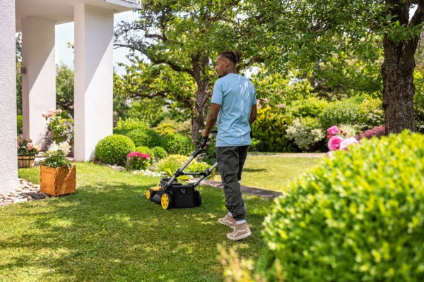 Газонокосарка LMO 5-18 Dual оснащена потужним безщітковим 36-вольтним двигуном, що дозволяє ефективно косити газони площею до 550 м². Завдяки малій вазі та маневреності пристрій легко переміщується нерівною місцевістю та навколо перешкод. Робоча ширина косіння становить 41 см, а висота зрізу регулюється в шести положеннях у діапазоні від 25 до 70 мм.