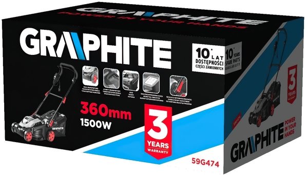 Електрична газонокосарка GRAPHITE 59G474 - це пристрій, з яким догляд за домашнім садом, газоном, стає легким і швидким. Тримач кабелю дає змогу вільно керувати пристроєм. Газонокосарка оснащена зручною ручкою для перенесення, розташованою на корпусі. Зручна ергономічна ручка дає змогу легко і зручно керувати газонокосаркою. Перемикач по всій довжині ручки, що значно підвищує комфортність роботи. А вимикач захищений від випадкового ввімкнення. Крім невеликих газонів, газонокосарка чудово впорається навіть з ділянками середньої площі. Ширина скошування становить 36 см, що забезпечує швидку роботу навіть на середніх площах. 3-ступінчасте регулювання рівня скошування трави дає змогу підстригати газон на висоту 20, 35 і 50 мм, залежно від потреб. Скошена трава збирається в травозбірник ємністю 35 літрів.