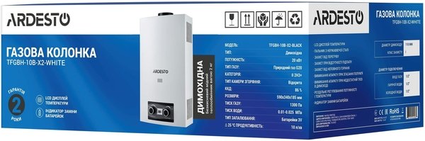 Газова колонка ARDESTO TFGBH-10B-X2-WHITE, 10 л/хв., 20 кВт