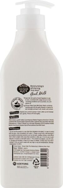 | Склад | Water, sodium laureth sulfate, cocamide mea, cocamidopropyl betaine, styrene/acrylates copolymer, fragrance, trihydroxystearin, arbutin, tocopheryl acetate, goat milk extract,butylene glycol, phenoxyethanol, ammonium chloride, polyquaternium-7, citric acid, tetrasodium edta, methylchloroisothiazolinone, methylisothiazolinone |