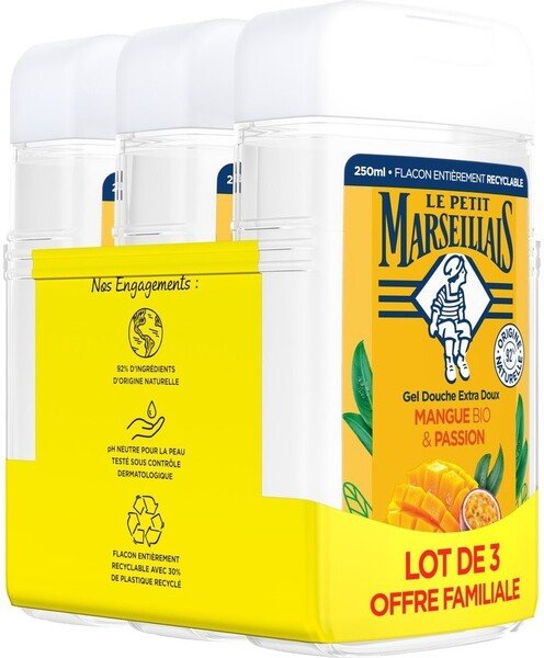 Гель для душу Le Petit Marseillais Манго та маракуйя 3*250мл