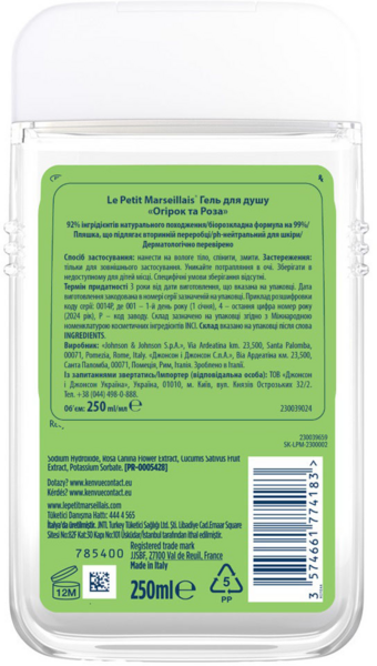 - Гель для душу Le Petit Marseillais Огірок та Троянда 250мл