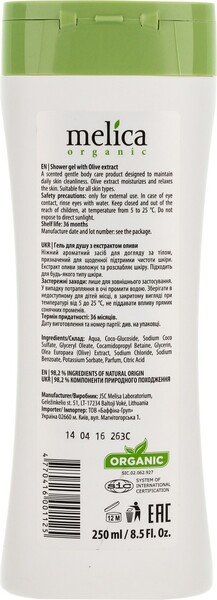 - Гель для душу Melica Organic з екстрактом оливкової олії 250 мл