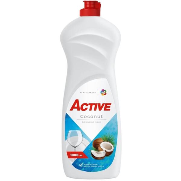 Засіб для миття посуду "Active Dishwashing Coconut" з ароматом кокосу - це ідеальний вибір для ефективного та приємного миття посуду.