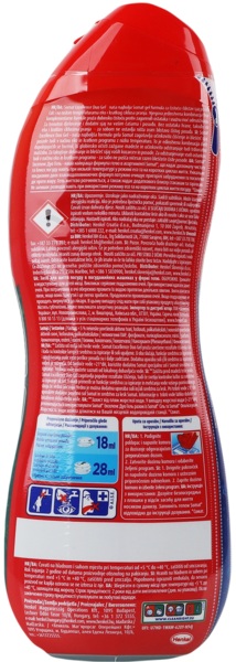 Відкрийте червону кришку, натиснувши на ребристу поверхню. Перевернувши флакон униз шийкою, налийте гель у дозатор відповідно до рекомендованого дозування. Закрийте дозатор і запустіть програму.